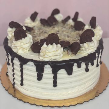Chocolate Cake with Buttercream frosting, Chocolate Ganache and Almond Joy Filling inside and out