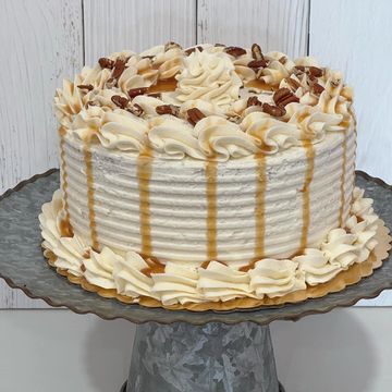 Butter Pecan Cake with Brown Sugar Buttercream, Caramel Drip and Toasted Pecans