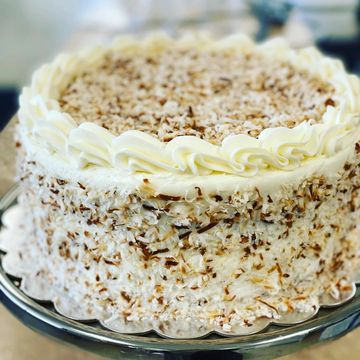 Italian Cream Cake with Cream Cheese Buttercream and toasted Coconut