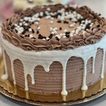 Chocolate Cake with Hot Chocolate Buttercream with Marshmallow Buttercream filling and a Marshmallow drip