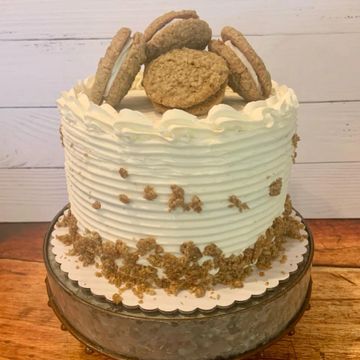 Oatmeal Spice Cake with Buttercream and Homemade Oatmeal Cream Pie Crumble