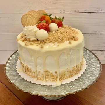 Strawberry Cake with Buttercream, White Chocolate Ganache and Crushed Golden Cookies