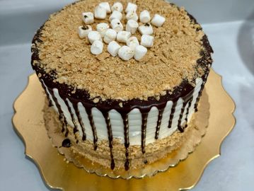 Chocolate Cake with Marshmallow Buttercream, Graham Cracker Crumble and Chocolate Ganache
